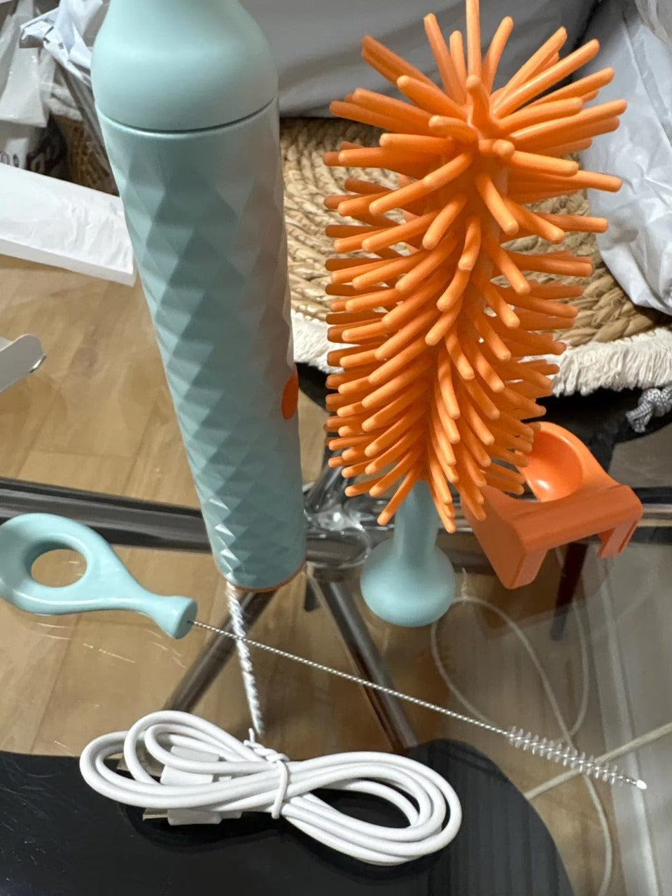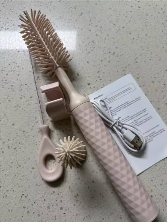 [Multifunctional bottle brush]: bottle brush set with electric bottle brush, nipple brush, straw cleaner brush; suitable for cleaning all kinds of baby bottles, water bottles, milk bottles, pacifier, straw, etc.